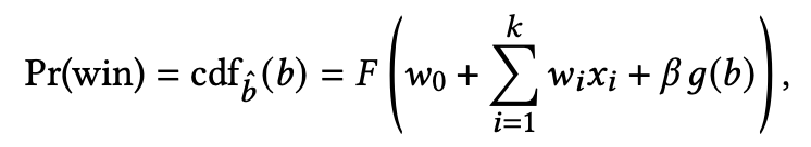 왜 cdf을 추정할까? DSP 입장에서는 winning price을 모르는 경우가 대부분이기 때문이다. 경매에서 이기더라도, fpa에서는 타 DSP의 입찰 가격을 알 수 없다. 경매에서 지는 경우는, 더욱이 자회사보다 더 높은 입찰 가격을 알 수 없다. 따라서 자회사의 입찰 가격보다 높냐, 낮냐를 통해 cdf을 추정할 수 있을 뿐이다. 만약에 winning price을 알 수 있다면 상황은 달라진다. 이는 나중에 생각하자.