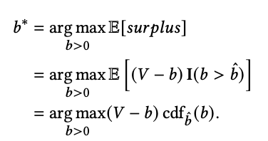 목표는 위의 surplus을 최대화하는 입찰가를 찾는 것이다.