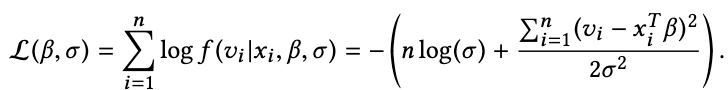 $v_i$을 minimum winning price to win으로 정의하자. $v_i$가 특정 분포를 따른다고 가정해보자. 예를 들어 정규 분포를 따른다면 아래의 log likelihood을 최대화함으로써 파라미터를 최적화할 수 있다.