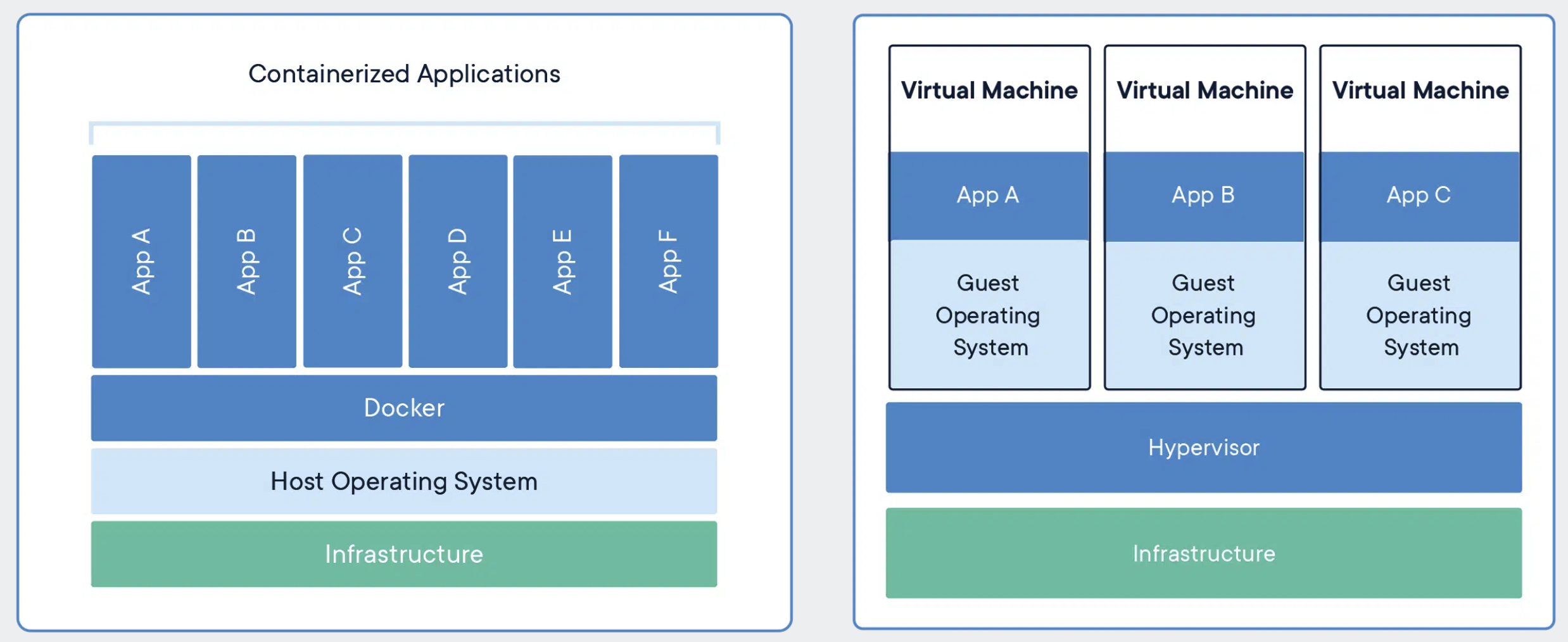 | Memory Efficiency | 가상화할 자원이 없기 때문에 효율적 | OS 전체를 로딩해야하기 때문에 비효율적 |