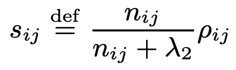여기서는 아이템간의 유사도를 아래의 shrunk correlation coefficient로 계산한다.