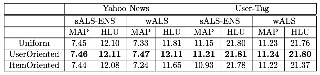 - user-oriented 방법이 제일 좋은 결과를 보여줬고 uniform은 그 중간쯤의 결과를 보여줬다.