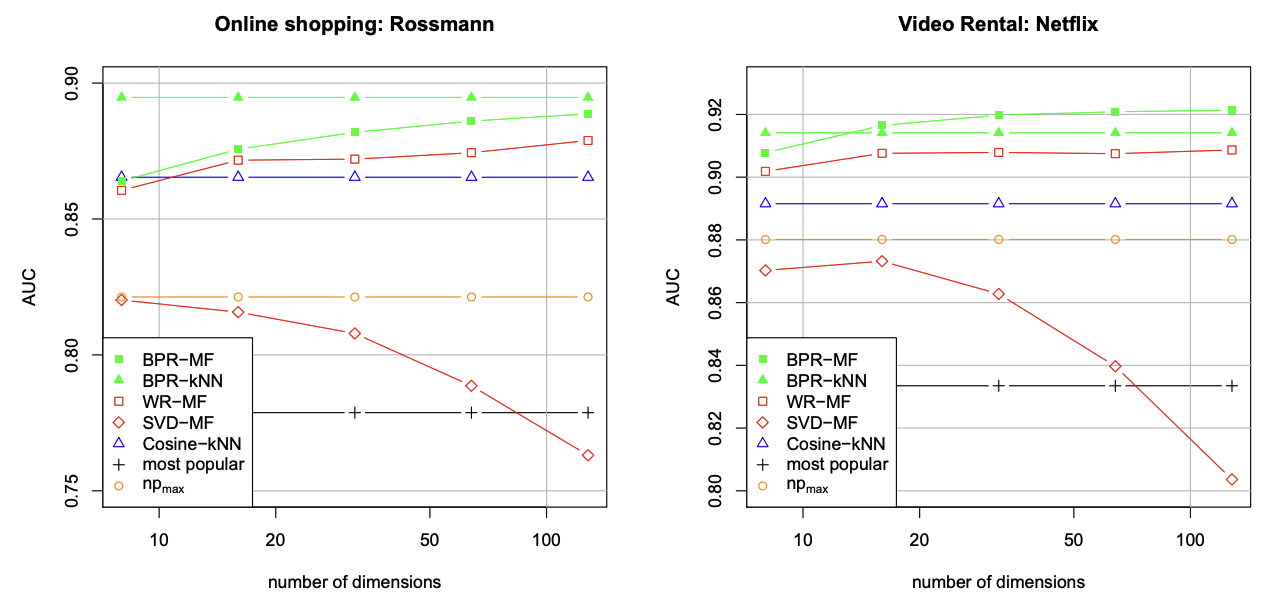 - 파라미터 최적화 방향을, 점수 예측이 아닌 랭킹으로 한 결과, 추천 품질이 훨씬 좋아졌다고 해석할 수 있다.