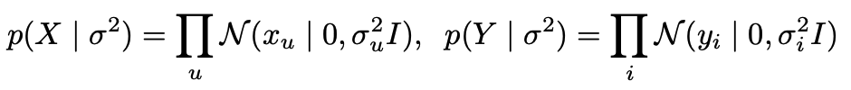 likelihood을 정의했으니 prior을 정의해보자. 유저와 아이템에 대한 latent factor의 prior을 spherical prior로 정의한다.