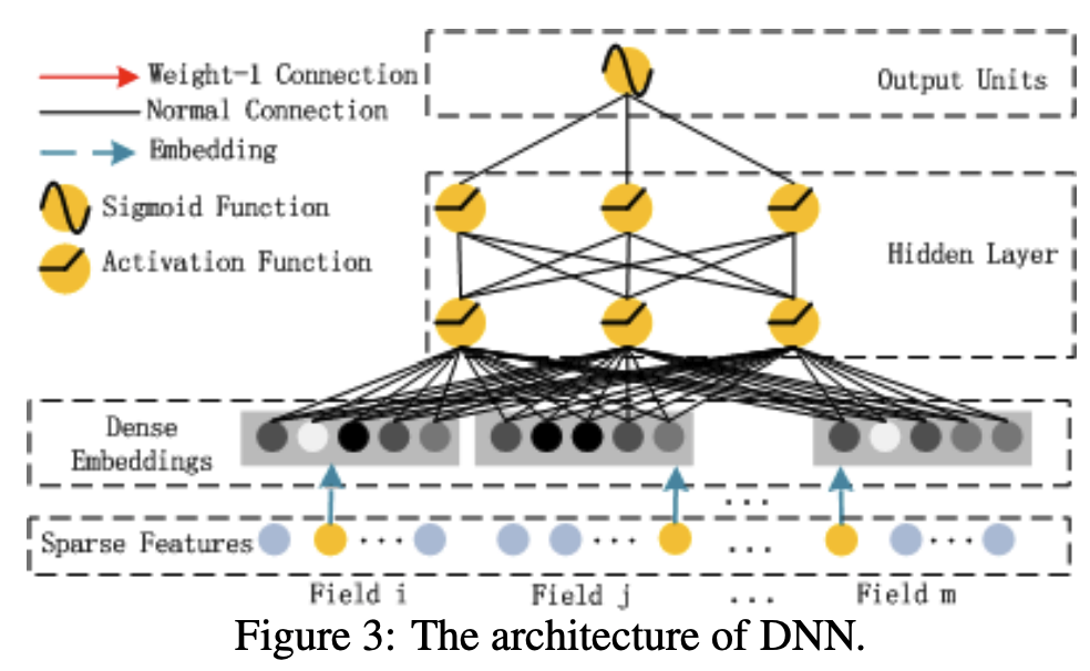 - 구글에서 발표한 wide & deep neural network 논문에서 linear 특성을 반영하는 wide 부분을 factorization machine으로 변경한 모형을 제시한다.