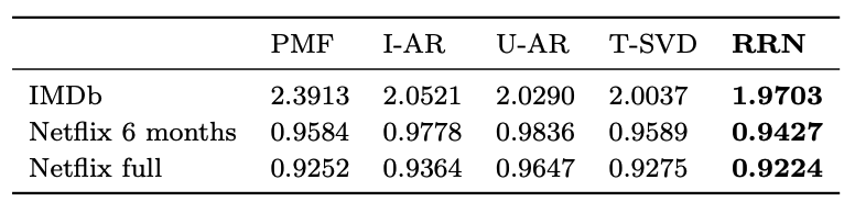 모든 데이터에서 RRN의 RMSE가 작게 나타났다.