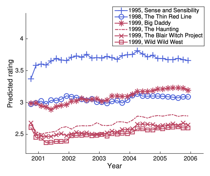 - 예를 들어, 영화에 대한 인식이 특정 이벤트에 의해 변한다든가 계절적인 요인에 의해 크리스마스 영화가 더 많이 소비되기도 한다. 또는 유저의 흥미 자체가 변할 수도 있다.