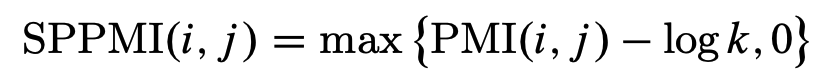 Levy는 더 나아가서 단어 임베딩을 shifted positive PMI (SPPMI) 행렬에 spectral dimension reduction을 하여 유도하는 것을 제안한다.