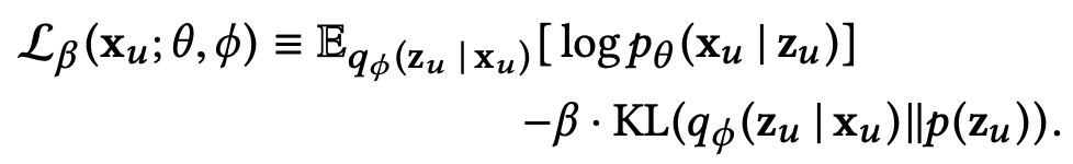 $\beta$에 따라서 데이터에 잘 맞춰지는 정도 (likelihood, $p_\theta (x_u | z_u)$와 posterior가 prior에 가까워지는 정도 (KL)의 trade-off가 결정된다. 논문에서는 $\beta$을 1에 가깝게 증가시키며 학습을 진행할 것을 권장한다.