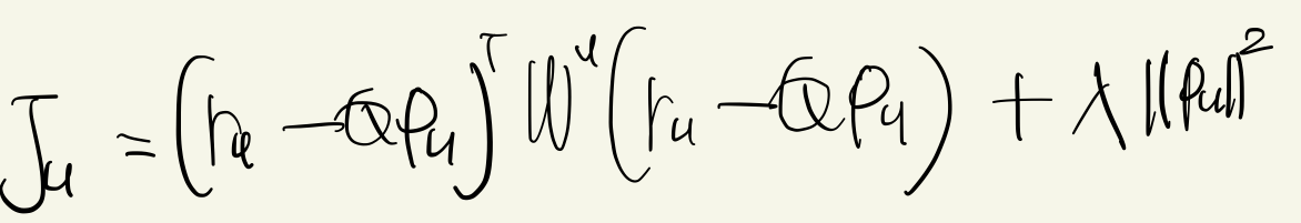 잘 보면, weighted ridge regression 형태이다. 즉, $|| \mathbf{W} ( \mathbf{y} - \mathbf{X \beta} ) ||^2 + \lambda || \mathbf{\beta} ||^2$로 바꿔서 생각해보면 이에 대한 해를 아래와 같이 유도하면 된다.