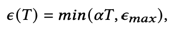 implicit feedback이 1이고, loss 값이 threshold인 $\tau$ 값을 넘으면 해당 loss을 0으로 truncate해버린다. 하지만 loss가 iteration이 지남에 따라 줄어들기 때문에, fixed threshold을 적용하는 것은 적절하지 않을 수 있다. 이러한 이유로, iteration T에 따라서 dynamically 변화하는 $\tau(T)$을 정의해야한다. 게다가, 데이터마다 loss values는 모두 다르다. 따라서 drop rate인 $\epsilon(T)$을 정의해야한다. 논문에 따르면 $\epsilon(T)$는 다음의 특징을 가져야 한다. 1) 모든 loss가 버려지지 않도록 upper limit이 있어야 한다. 2) 학습 초기에 모든 interactions이 허용되도록 $epsilon(0) = 0$으로 정의한다. 3) zero 부터 upper bound까지 smoothly increase해야 한다.