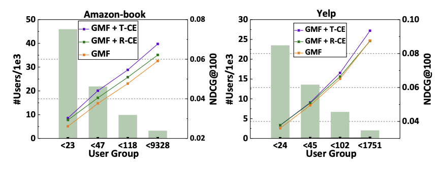 - 본 논문에서도 이와 비슷한 것을 했는데, 유저의 interactions 수에 따라 그룹을 만들고 성능을 비교했다.