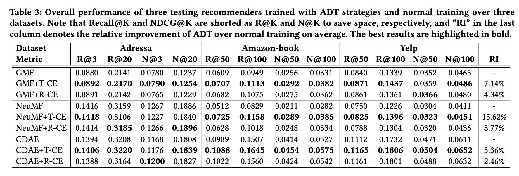 위의 observations에서 보았듯이, false-positive interactions은 학습 초기에 large loss을 가지기 때문에 궁극적으로 모델의 성능을 떨어뜨릴 수 있다. 따라서 본 논문에서는 ADT 학습 기법을 통해 large loss을 가지는 interactions을 discard하거나 reweigh한다. ADT는 loss 값 자체를 dynamically pruning하는 것이기 때문에 loss function에 상관 없이 적용될 수 있다. 본 논문에서는 cross entropy loss에 적용해본다.