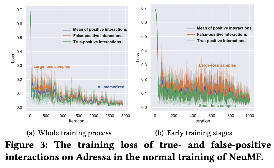 - loss가 작다는 것은 모델이 잘 맞춘다는 것이고 크다는 것은 모델이 잘 못 맞춘다는 것이다. 즉, 학습 초기에는 false-positive interactions이 memorize하기 훨씬 힘들다는 것이다.