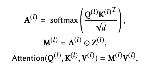 잘 보면, $\mathbf{A}^{(l)}$은 기존의 attention matrix이고 $\mathbf{Z}^{(l)}$을 elementwise하게 곱해서 masking을 하는 것을 알 수 있다.