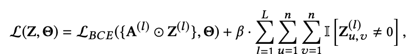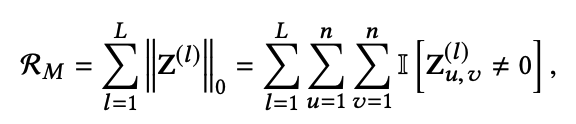 여기서 $\mathbf{M}^{(l)}$의 sparsity을 encourage하는 방법은 마치 lasso에서 $L_0$ norm을 부여하는 것처럼, 여기서도 $\mathbf{Z}^{(l)}$의 non-zero entries의 수를 명시적으로 penalize하는 것이다.