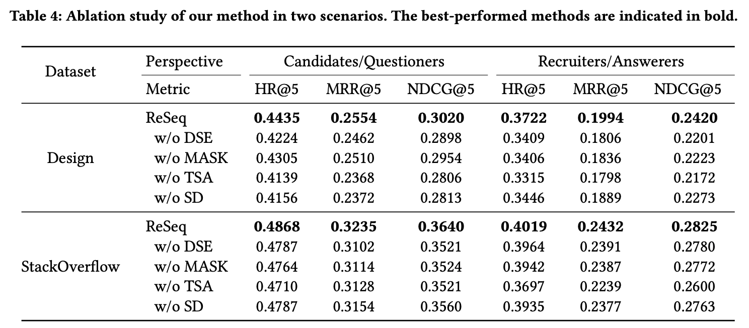 - w/o DSE: ReSeq의 핵심 파트이다. decomposition, sharing embedding matrix을 제외한 경우이다.