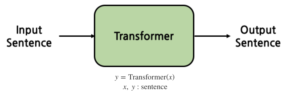 크게 encoder / decoder로 나누어서 본다. encoder는 입력 문장을 받고 decoder는 출력 문장뿐만 아니라 encoder에서 나온 결과물도 입력으로 받는다. 이를 쉽게 표현하면 아래와 같다.
