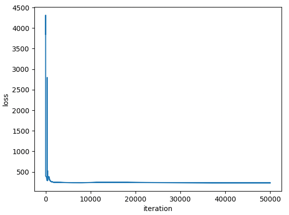 총 5만번의 epoch이며 batch gradient descent로 진행한다. 보통 deep learning에서 학습을 진행할 때는 mini-batch로 진행한다. 이 부분도 future work로 남겨둔다. train loss는 아래와 같다.