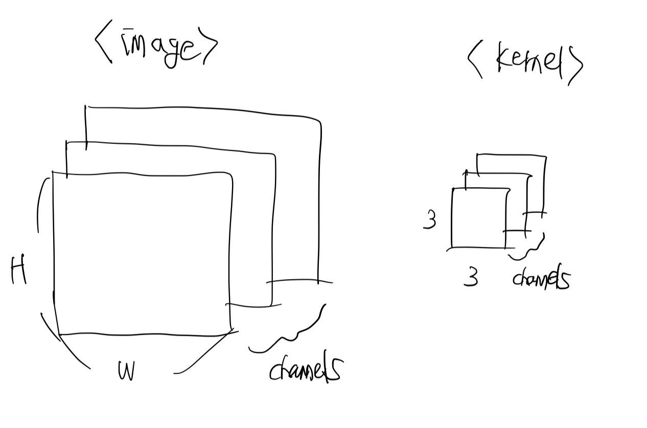 딥러닝에서 convolution 연산은 보통 2차원 이상의 데이터에 대해 kernel(weight)을 정의하고 kernel을 이동하며 matrixwise 곱셈을 하는 것을 의미한다. 이미지 데이터를 예시로 생각해보자. 색깔이 있는 이미지는 Channel x H x W로 데이터가 구성되고, 보통 channel의 수는 3이다. (흑백 이미지의 channel 수는 1이다)