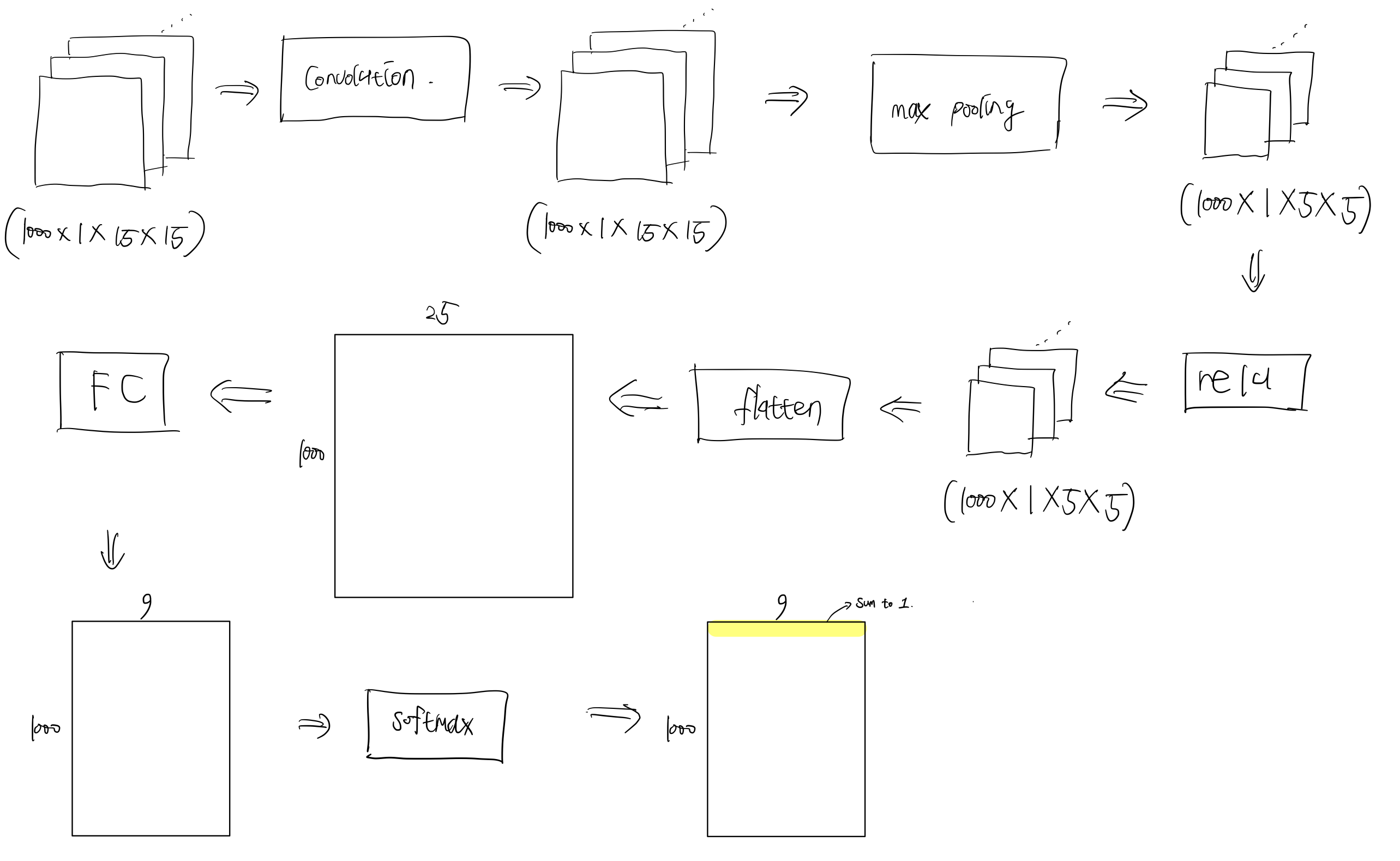 - FC을 통해 (1000, 9) 차원의 데이터로 변환한다.