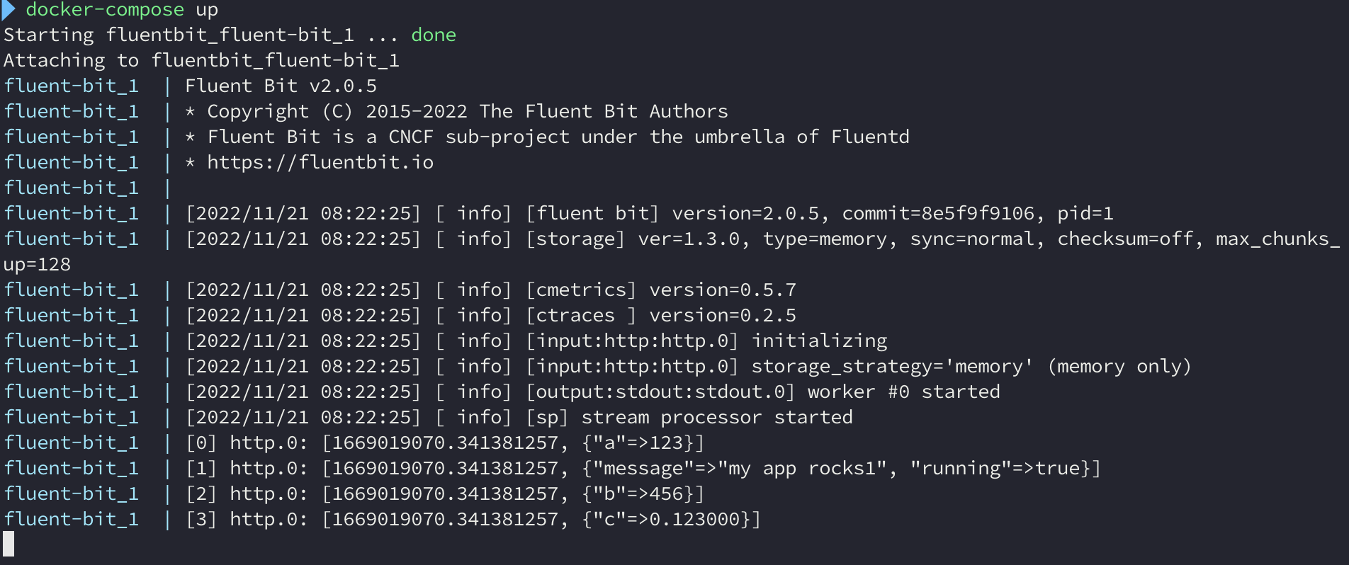 $ docker run -ti cr.fluentbit.io/fluent/fluent-bit:2.0 \