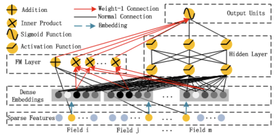 - 구글에서 발표한 wide & deep neural network 논문에서 linear 특성을 반영하는 wide 부분을 factorization machine으로 변경한 모형을 제시한다.